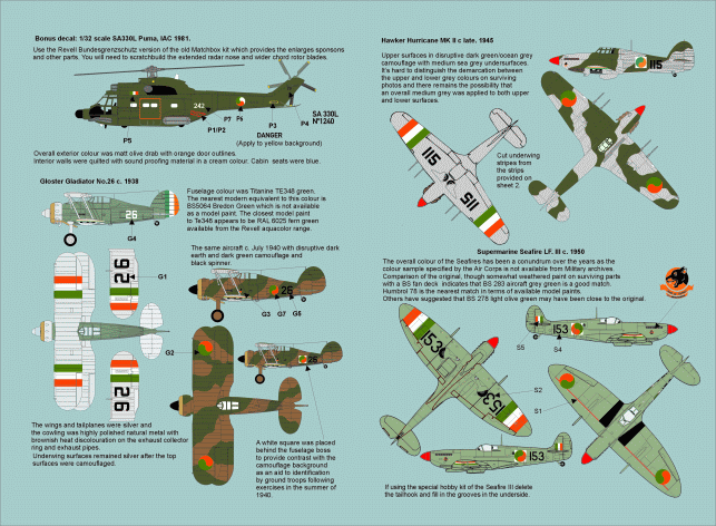 Max4821 Irish Air Corps 1922-52 1/48 scale decal sheet instructions
