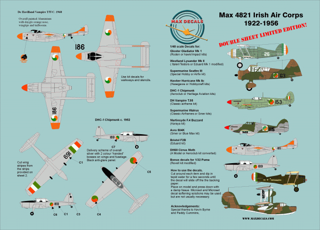 Max4821 Irish Air Corps 1922-52 1/48 scale decal sheet instructions